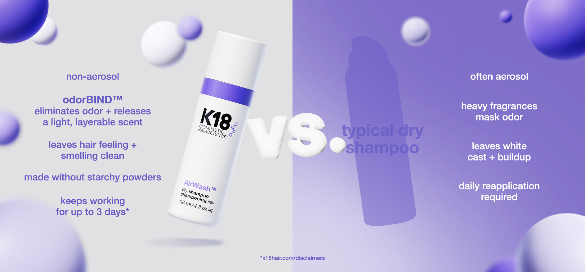 AirWash™ vs. traditional dry shampoos