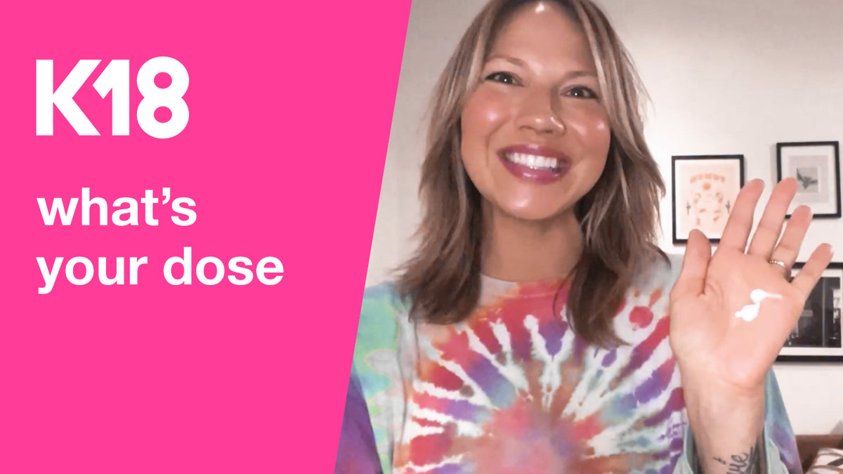 - Apply 1-3 pumps of K18 leave-in molecular repair hair mask based on your length and density, starting at the ends and working up towards the roots (for the mini 15ml mask, use 3-9 pumps)